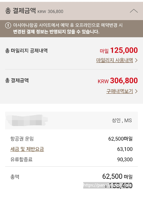 ✔ 세금 및 유류할증료 결제: 마일리지 항공권이라도 세금과 유류할증료는 별도 결제해야 합니다.