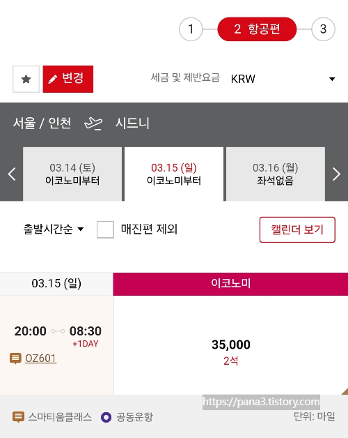 * 2025년 3월 19일 기준으로 2026년 3월 15일 항공권까지 열려 있는 것을 볼 수 있습니다.